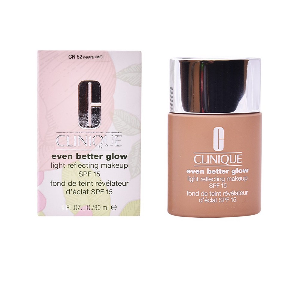 Clinique Even Better Glow Base SPF 15: Clinique Even Better Glow Foundation é uma base com cobertura ajustável de leve a média, que fornece luminosidade imediata e altamente na moda, proporcionando benefícios de tratamento ao longo do tempo.