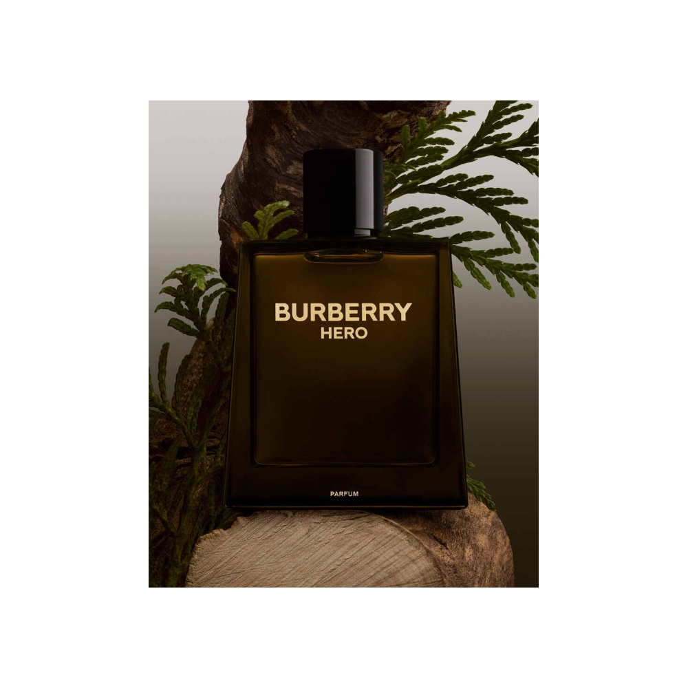 Burberry Hero Parfum Retrata o homem moderno. Sincero, mas corajoso, supera-se constantemente em todos os desafios para se tornar mais forte e mais ligado à sua liberdade interior. Um trio de óleos de cedro, revigorados pela madeira de Amyris e reforçados pelo óleo de Cypriol para um acabamento aromático. Vem numa garrafa de vidro angular decorada com o logótipo da Burberry. Intenso e poderoso, Burberry Hero Parfum.